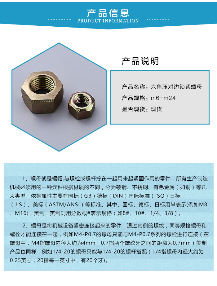 主營產(chǎn)品:防松螺母、鎖緊螺母