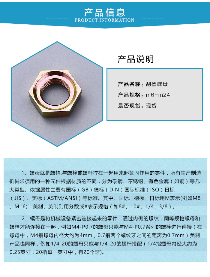 現(xiàn)實(shí)社會(huì)中六角刮槽螺母扮演著重要的角色,它的主要作用是配合螺栓使用,將機(jī)械設(shè)備或結(jié)構(gòu)進(jìn)行連接緊固。